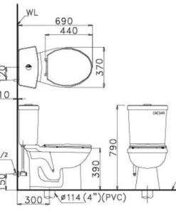 Thông số bồn cầu Caesar CDS1325 thùng T1225