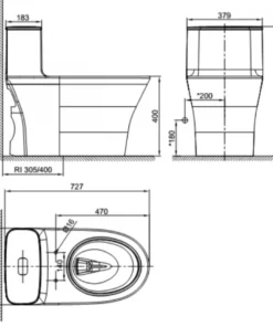 Bản vẽ kỹ thuật bàn cầu WP1880 American 1 khối
