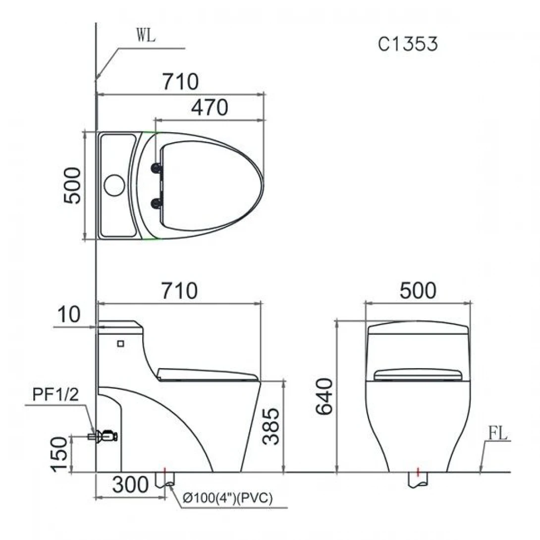 Bồn Cầu Caesar C1353 1 Khối