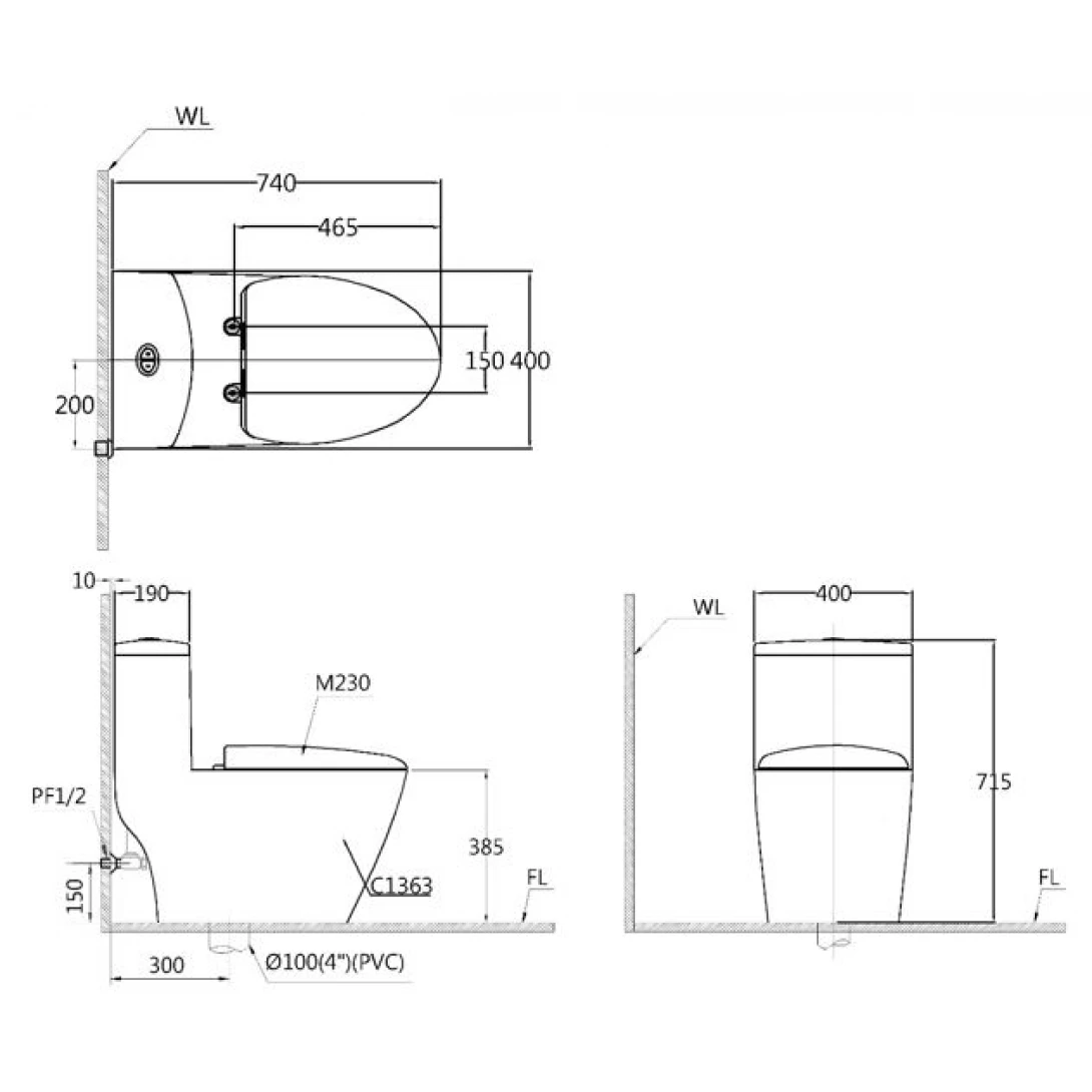 Bồn Cầu CAESAR C1363 (CD1363) Một Khối Nắp Êm