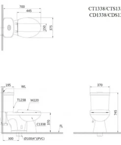 Thông số của bàn cầu CAESAR CT1338 thùng T1138