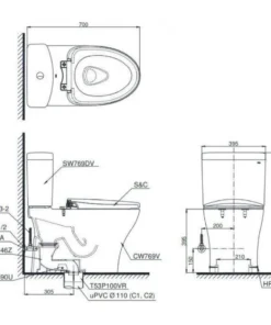 Bản vẽ kích thước bồn cầu điện tử CS 769DRW18 TOTO