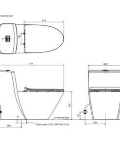 - Loại: Bồn cầu 1 khối xả 2 cửa