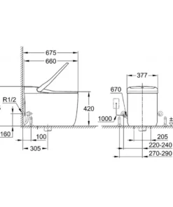 Bản vẽ bồn cầu điện tử Grohe 36492 SH0 đặt sàn