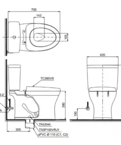 Bản vẽ xí bệt Toto nắp êm TC385VS