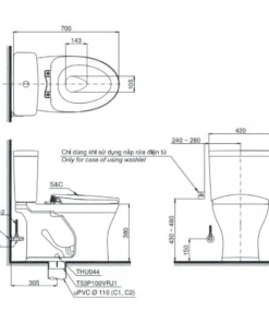 Bồn Cầu TOTO CS735DT8 Hai Khối Nắp TC600VS