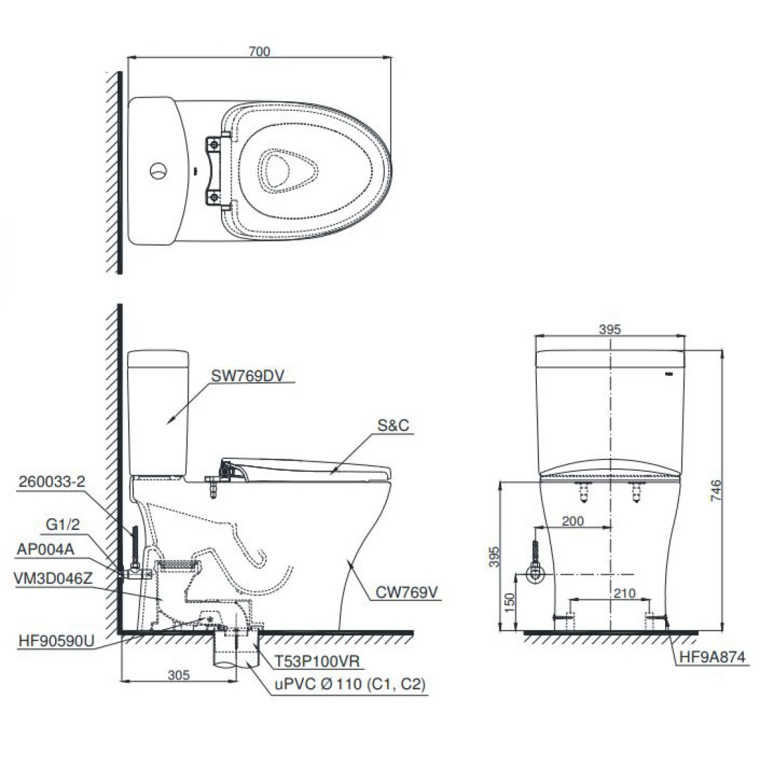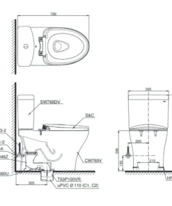 Bồn Cầu TOTO CS769DRT3 (CS769DT3) Hai Khối Nắp TC385VS