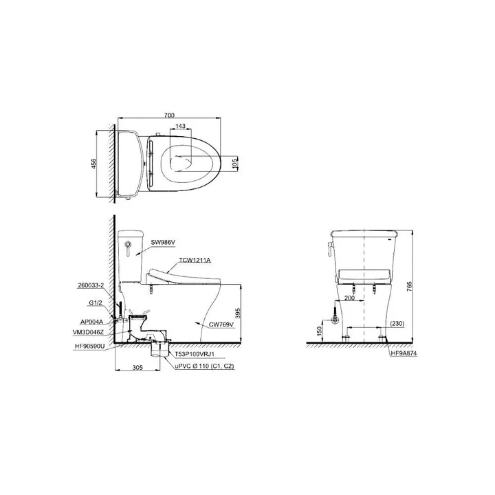 - Tên sản phẩm: Bệt vệ sinh TOTO 2 khối nắp rửa cơ TCW1211A