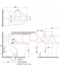 Bồn Cầu TOTO MS855DT2 Một Khối Nắp TC393VS