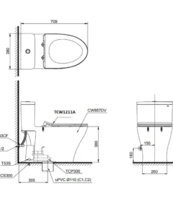 Bản vẽ kích thước bàn cầu TOTO MS 857 DE4