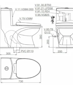 Tính năng bàn cầu Viglacera V39 nắp V37