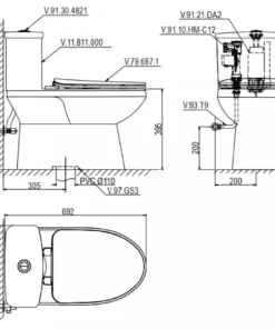 Bản vẽ bệ xí bệt Viglacera V 811 liền khối