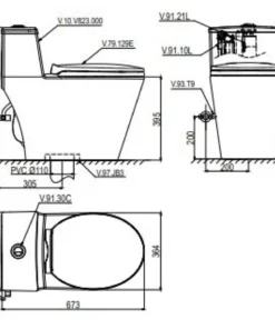 Bồn Cầu Viglacera V823 Nắp Êm 1 Khối + Vòi Xịt VG826