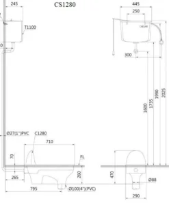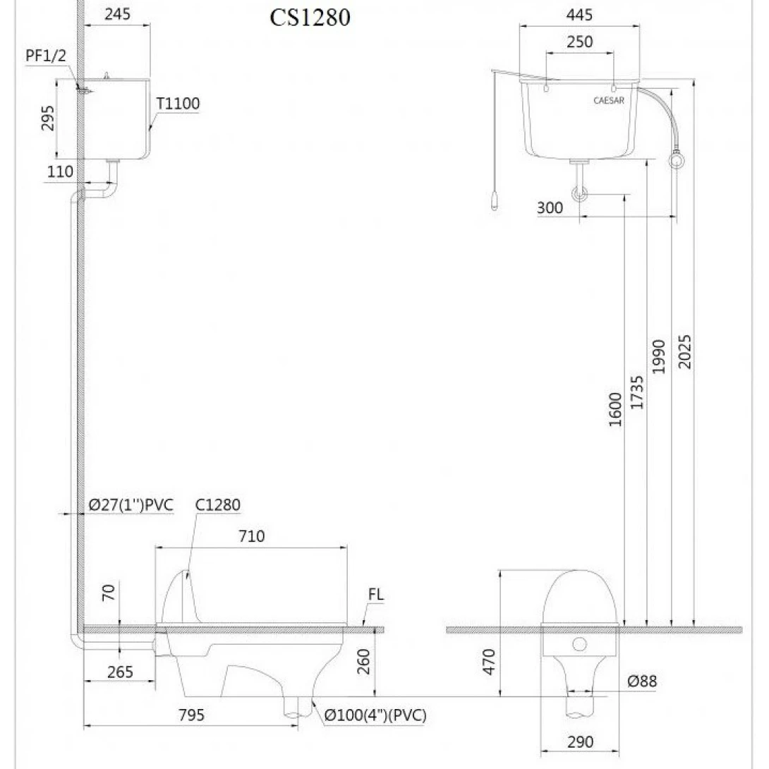 Bồn Cầu Xổm CAESAR CS1280 Thùng T1110 Treo Tường