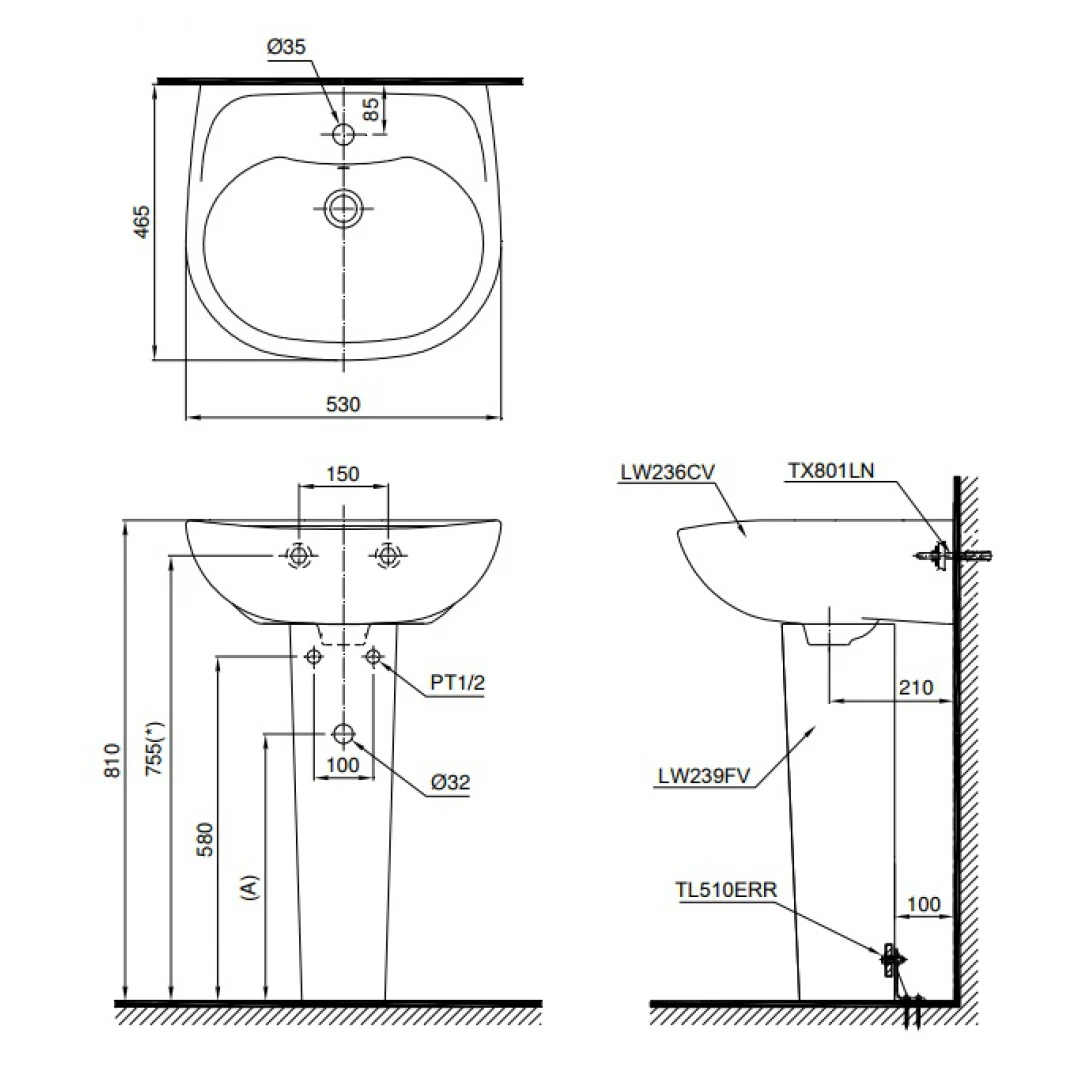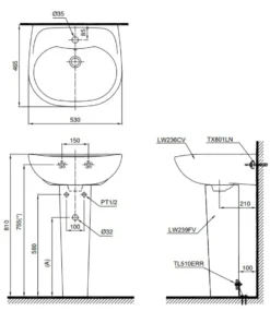 Chậu Lavabo TOTO LPT236CS Treo Tường Chân Dài